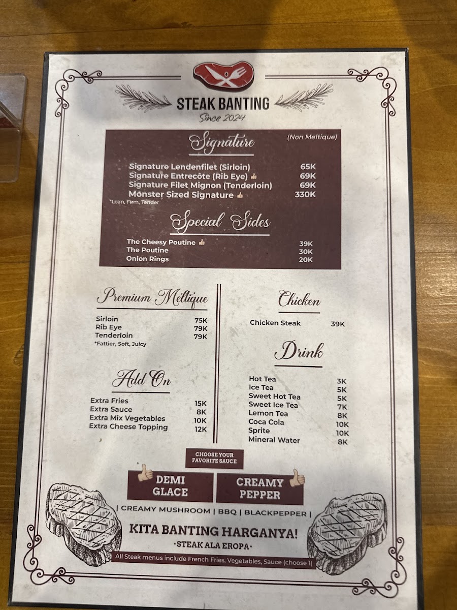 Welcome to Steak Banting, a hidden gem nestled in the bustling area of Pluit, Jakarta. This vibrant street food restaurant redefines the steak experience by offering high-quality meat at exceptional prices. With dishes starting from just Rp35,000, it’s a haven for steak lovers on a budget.
